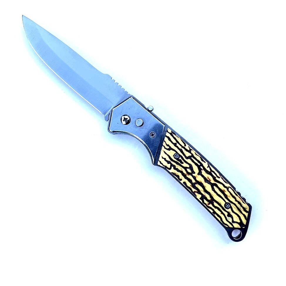 Този сгъваем нож е идеално решение за любителите на outdoor активности, риболов, къмпинг или хора, които търсят надежден инструмент за ежедневна употреба. Изработен е от устойчиви материали и предлага удобен, сигурен захват благодарение на дръжката с декоративен дизайн.