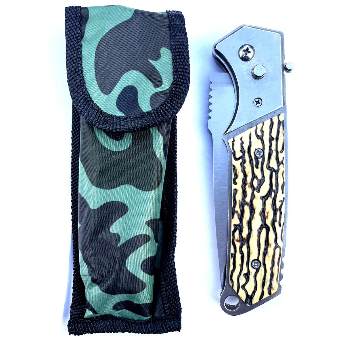 Сгъваем нож с камуфлажен калъф – практичен, здрав и удобен за ежедневно носене